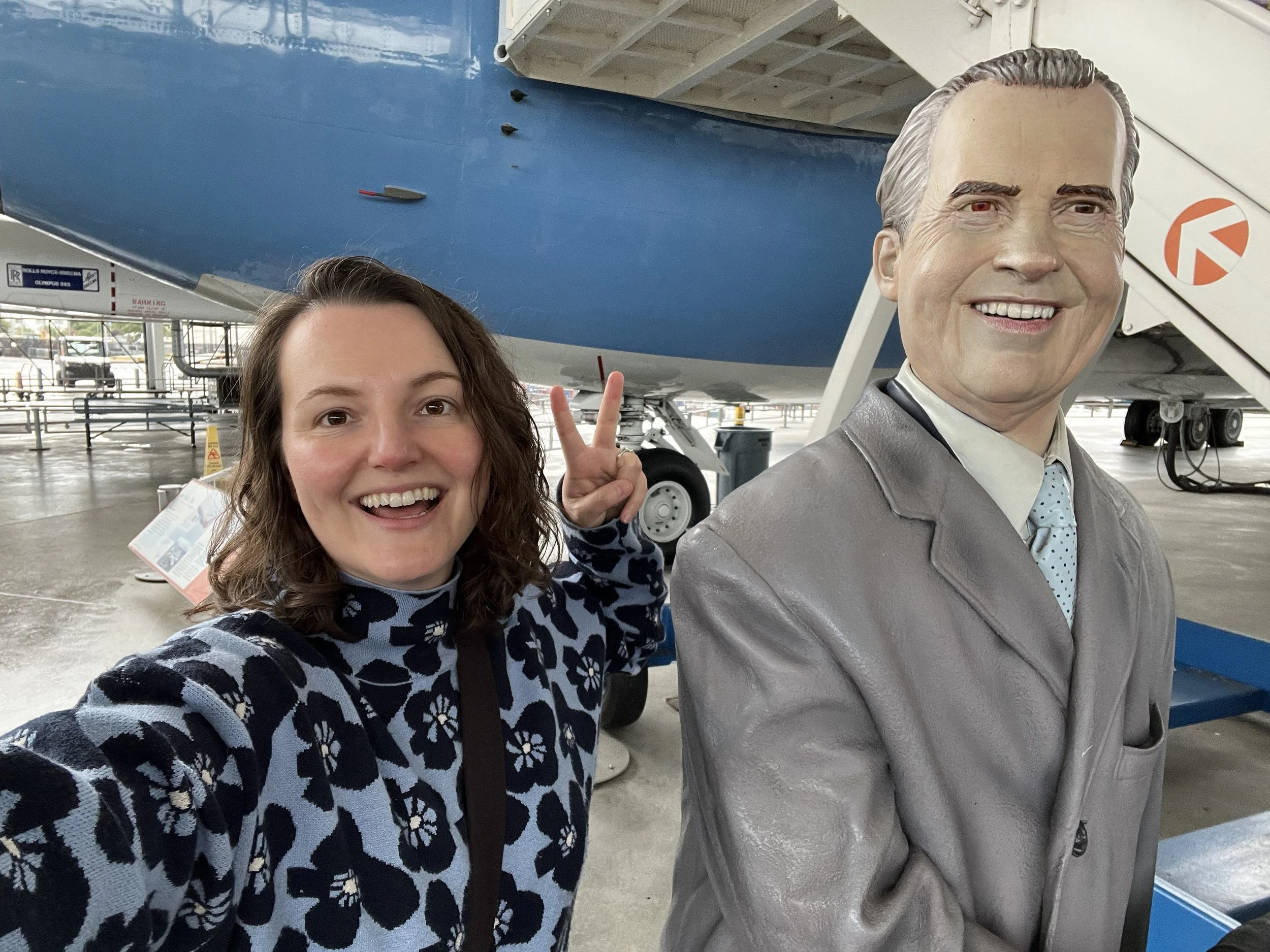 Posing with a (surely haunted) full-size replica of Richard Nixon at Seattle’s Museum of Flight.