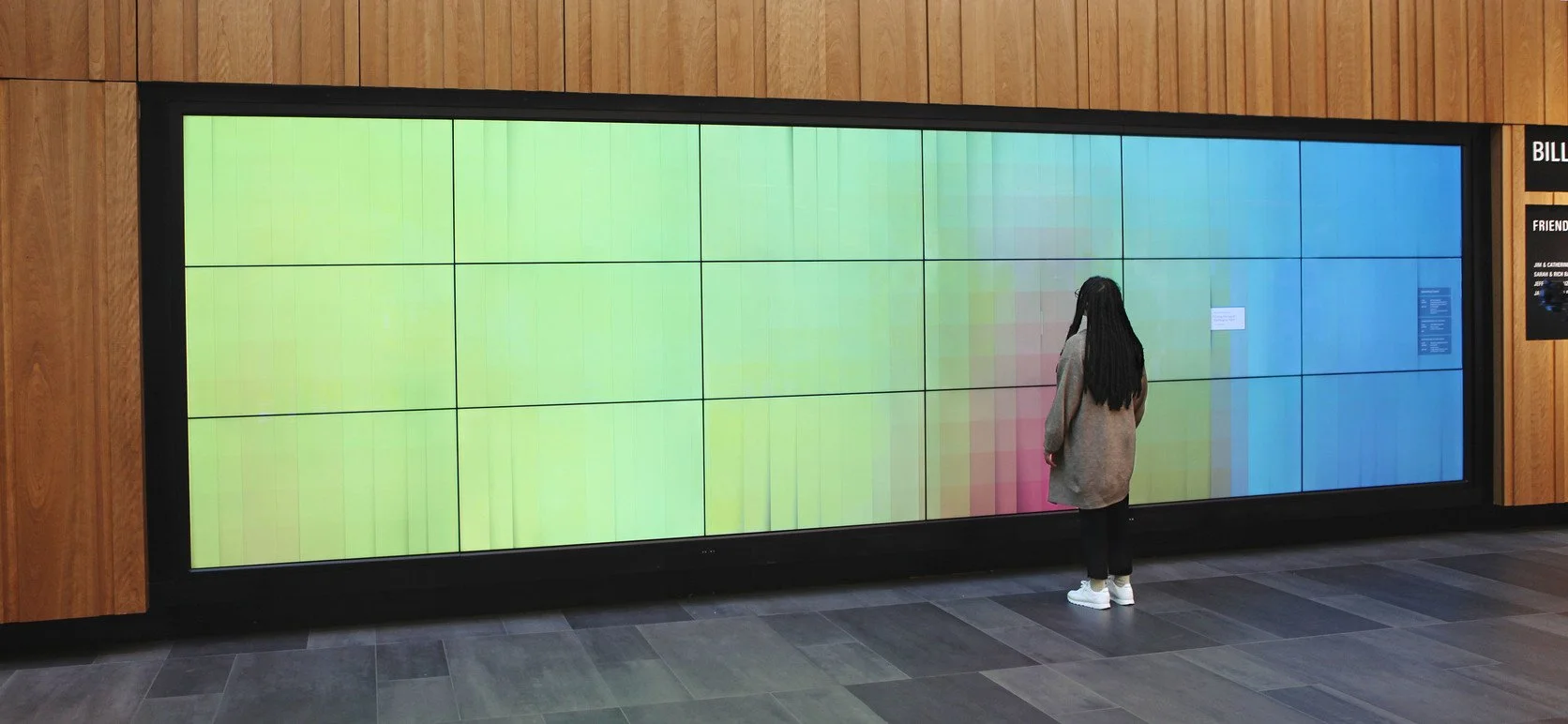 Serving as both an exploratory exhibit and ambient artwork, The Tribute Wall responds to visitor movement through waves of color and evolving story prompts. I also developed a four-issue content cycle and management plan, allowing the Allen School team to update and expand the experience over time.